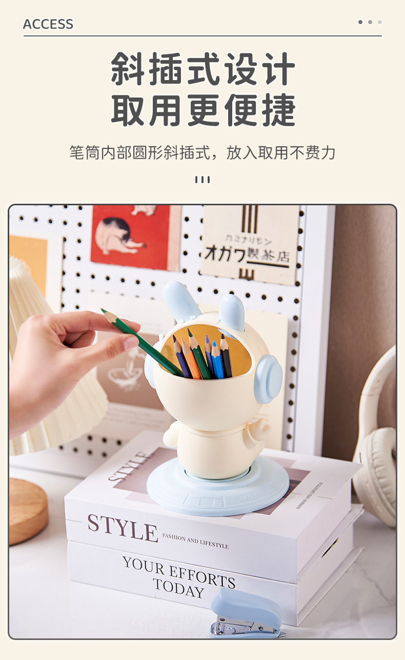 Songtai Can Rotate Creative Cute Desktop Rabbit Pen Holder Multi-Functional Home Living Room Office Stationery Storage Box